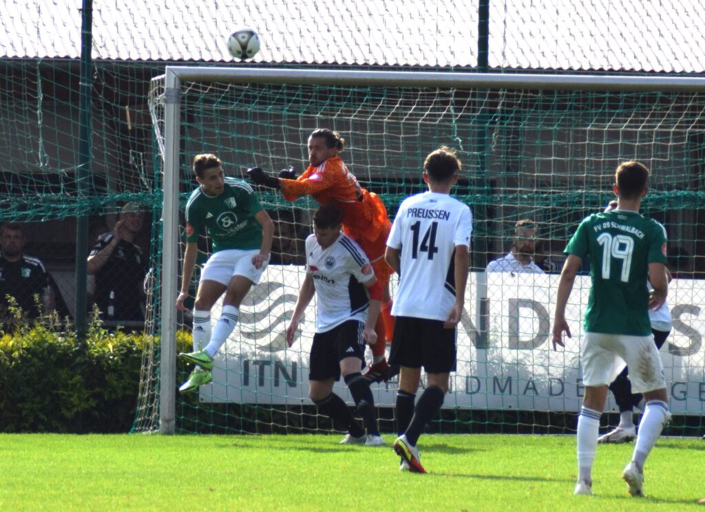Beim Tabellenletzten konnten wir leider nicht an unsere starke Vorstellung gegen Jägersburg vom letzten Sonntag anknüpfen. Ganz früh schon fangen wir uns auf Naturrasen das erste Gegentor ein. Mayan wird im Strafraum gleich zu mehreren Versuchen eingeladen, bis er das Leder aus kurzer Distanz endlich versenkt (9. Minute). Da hätte unsere Defensive viel energischer dazwischen gehen müssen. Großer Jubel bei den Einheimischen, vielleicht klappt es ja dieses Mal mit dem ersten Dreier. Unsere Angriffsversuche bleiben im gesamten Spiel harmlos, nur ein Kopfball von Felix Keßler sorgt vor der Pause für etwas Gefahr, aber Greff im Tor ist aufmerksam (43.). Schwalbach indes hätte mit Mehle noch erhöhen können, Kevin Collofong pariert (35.).