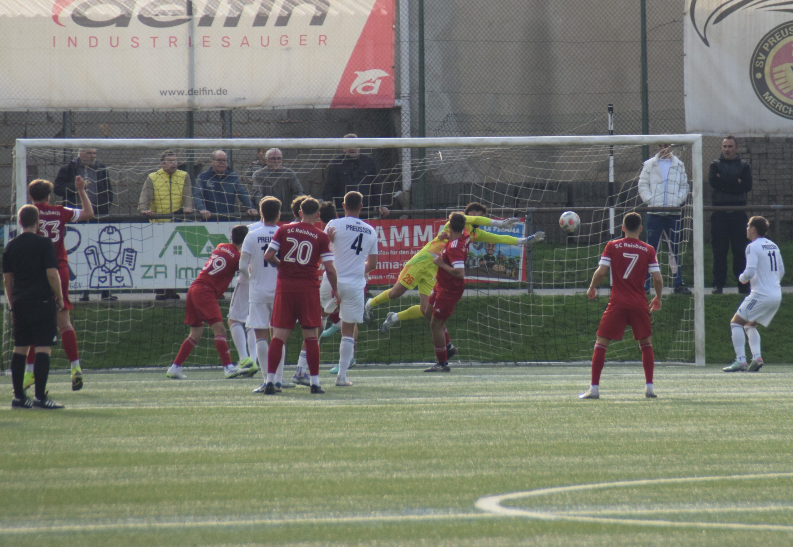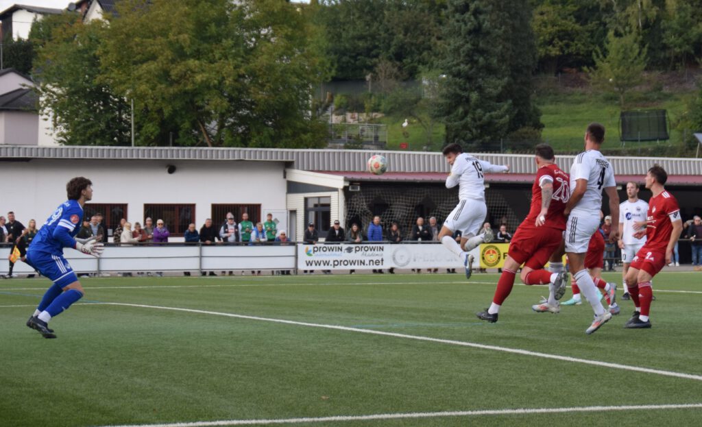 In der ersten Hälfte starten wir hellwach, machen sogleich Druck. Überraschendes Solo von Anil Karaoglan, beherzter Schuss, knapp drüber (8.). Starker Freistoß Lukas Paulus, aber Torwart Philippi taucht reaktionsschnell in die Ecke (11.). Klares Foulspiel an Sascha Bamberg im Strafraum, Elfer. Das macht Kapitän Felix Keßler, sehr präzise getreten, Philippi kommt nicht dran: 1:0 (21.). Konter des Gastes, Reisbachs Cortese prüft Art Zenunaj, unser Keeper pariert aber souverän (24.). Er machte am Sonntag ein hervorragendes Spiel.