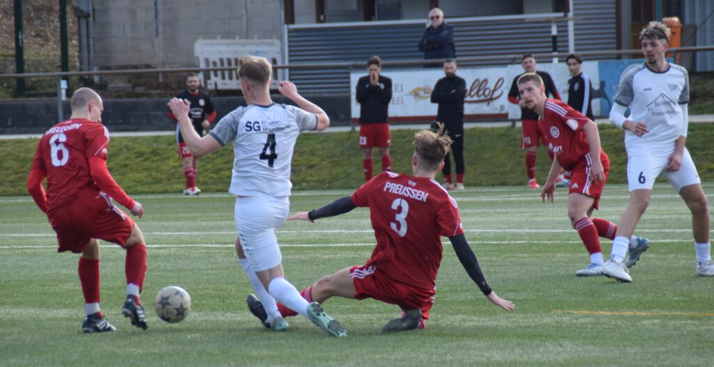 Bei unserer Zweiten ist es umgekehrt, sie muss sich im März überwiegend auswärts bewehren. Das erste Heimspiel nach der Pause im Spitzenspiel gegen die SG bot wenige Höhepunkte. Nach Führung von Gretz (35.) glich Alexander Mai aus (44.). Leider fingen wir uns kurz vor Schluss nach Ballverlust im Mittelfeld einen Konter samt Elfmeter ein. Den verwandelte der Gast dann souverän zum Siegtreffer (Baltes/90.+3.). Schade.
