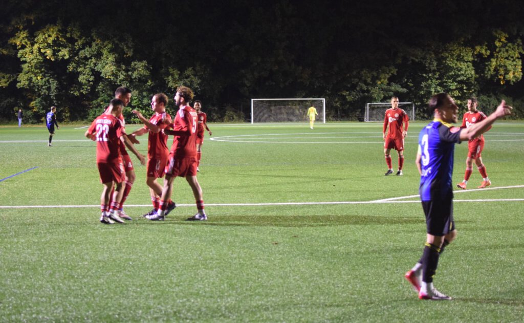 Von Beginn an dabei waren Yehudi Elmas und Cino Eren, Lukas Hornung und Niklas Wolter fehlten verletzt. In der ersten Hälfte hielten wir den Gastgeber sehr gut auf Distanz, gewannen viele Zweikämpfe, es gab kaum Möglichkeiten auf beiden Seiten. In der 24. Minute kommt Felix Keßler zum ersten Schuss aus guter Position, knapp drüber. Dann Ecke von Moritz Schwindling, Abwehrchef Lucas Becker ist da und wuchtet das Leder mit schönem Aufsetzer per Kopf ins Netz (30.). Große Erleichterung bei allen, jetzt muss der FCS reagieren.